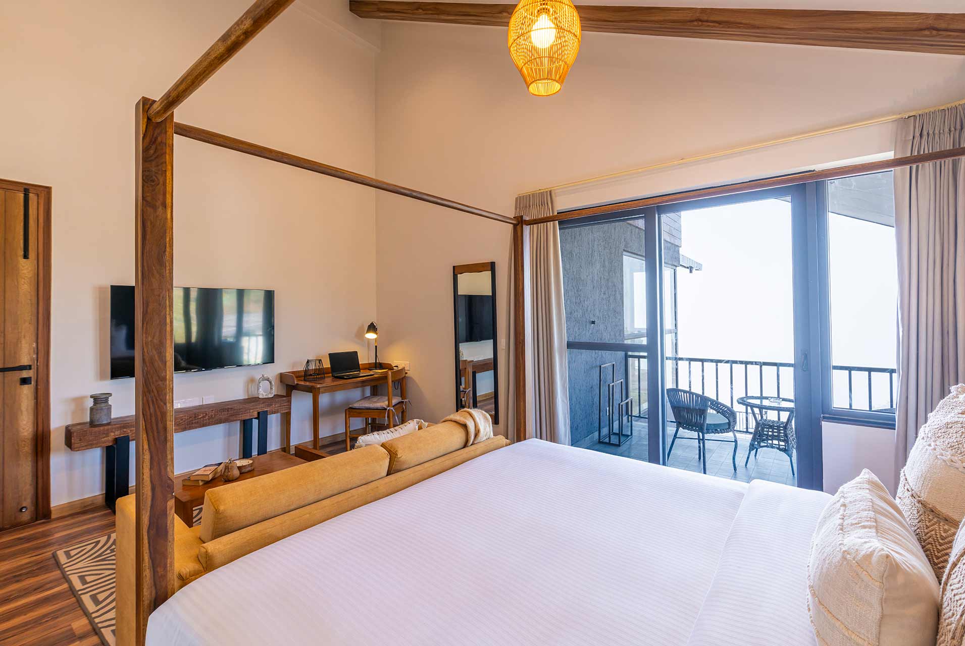 It is equipped with an AC, fan Wi-Fi and a workstation for the guests’ convenience.